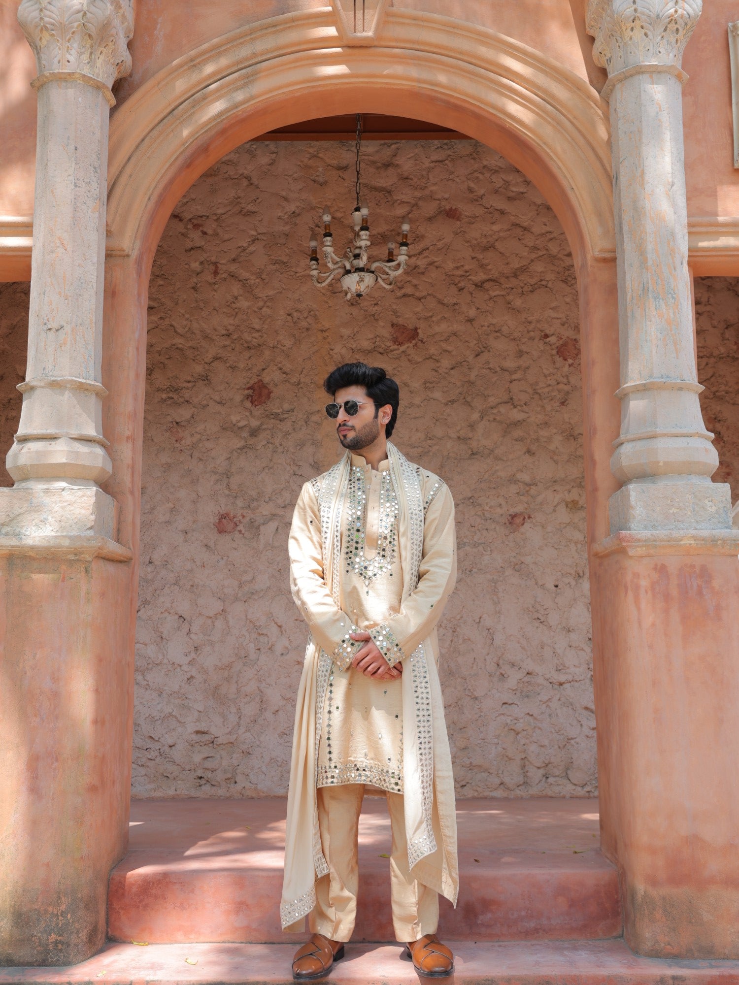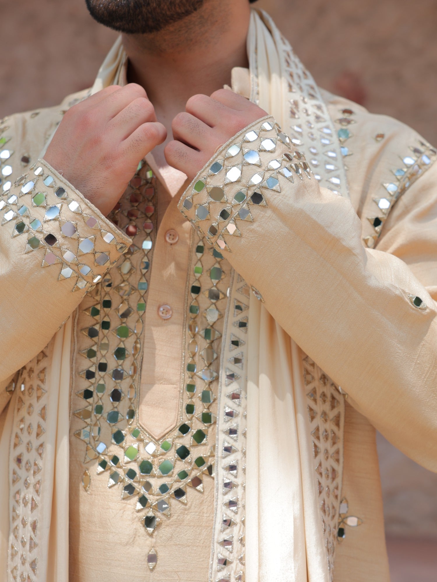 Beige Mirror Kurta